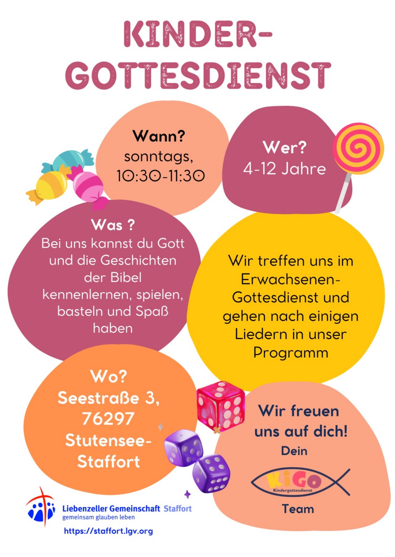 Sonntag um 10:30 mit parallelem Kindergottesdienst.
